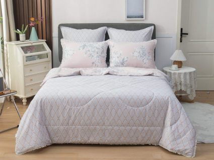 В комплекты комфортеров с одеялом Бернадетт входят наволочки, простыня и легкое всесезонное одеяло. Оцените это современное и очень удобное решение, которое идеально подходит тем, кто не любит возиться с пододеяльниками.