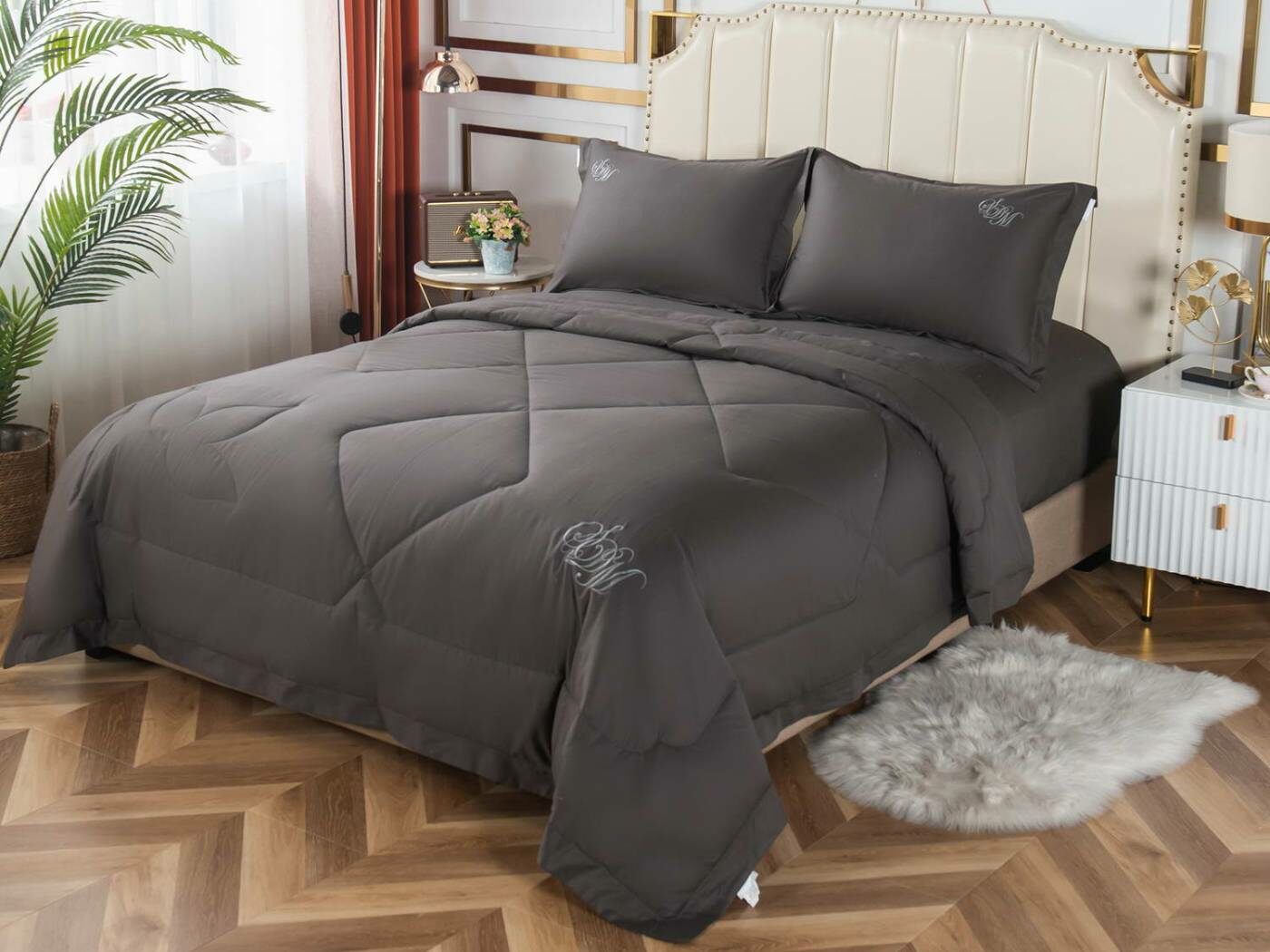 Элегантные комплекты постельного белья с одеялом премиум класса из нежной, натуральной ткани макосатин Нельсон. Этот материал обладает рядом важных качеств: он прочный, но мягкий, гладкая поверхность придает постельному белью красивый внешний вид. Натуральная ткань не вызывает аллергии и раздражения, такое постельное белье приятно использовать в любое время года, и в жару, и в холод.