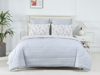 В комплект входит легкое, мягкое, летнее одеяло. Его можно стирать вместе с другим бельем, оно быстро сохнет и после стирки его не нужно гладить.
