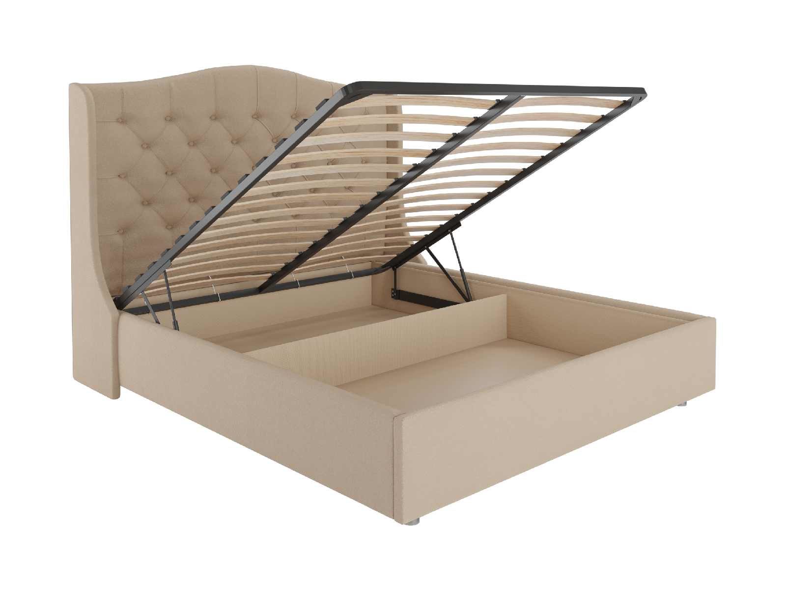 В комплектации с подъемным механизмом кровать имеет вместительный бельевой короб с двумя отделениями.