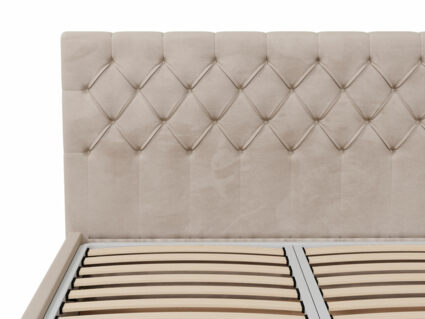 Продуманный дизайн спинки украсит минималистичный и классический интерьер. Классическая каретная стяжка на изголовье привлекает внимание и делает её невероятно эстетичной и изысканной.
