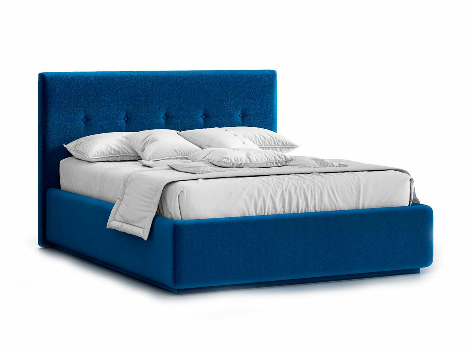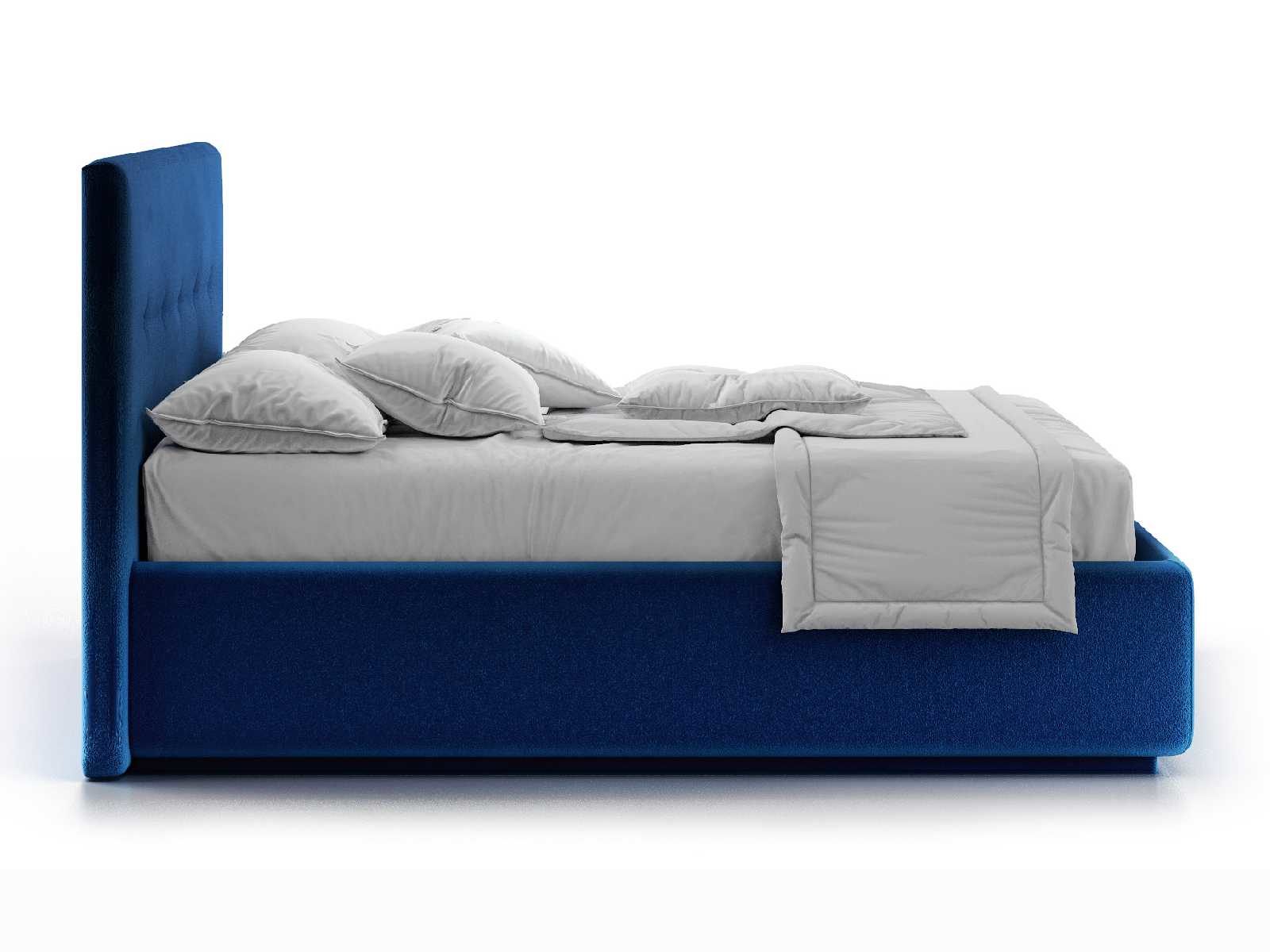 Кровать укомплектована IQ с подъемным механизмом и ящиком для белья без дна (дополнительная платная опция - дно к ящику IQ из HDF (ХДФ). Каркас кровати на цоколе, декоративный чехол на цоколе съёмный. Глубина ящика для белья - 30 см, без ограничения нагрузки на ящик.
