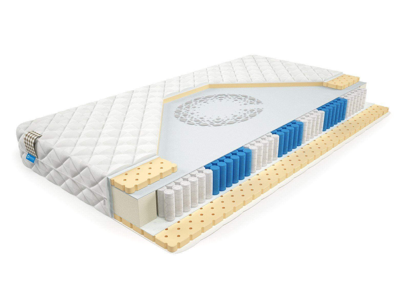 Матрас BioCrystal Record- мягкий матрас с латексом и 1000 пружинами. Матрас c ортопедическим эффектом на основе семи-зонного пружинного долговечного блока независимых пружин SIlverSpringPocket 7 zone. Данный блок насчитывает 1000 металлических пружин на одно спальное место, это оптимальное количество пружин для бюджетного матраса. 7 зональный пружинный блок SSP 1000 значительно прочнее обычного блока независимых пружин, и имеет большее количество витков, что, в свою очередь, лучше сказывается на упругости матраса и качестве сна. Матрас насчитывает семь зон жесткости и правильно повторяет изгибы позвоночника во время сна или отдыха. С каждой стороны матраса расположены по 3 сантиметра натурального латекса, что делает матрас мягким и упругим одновременно.