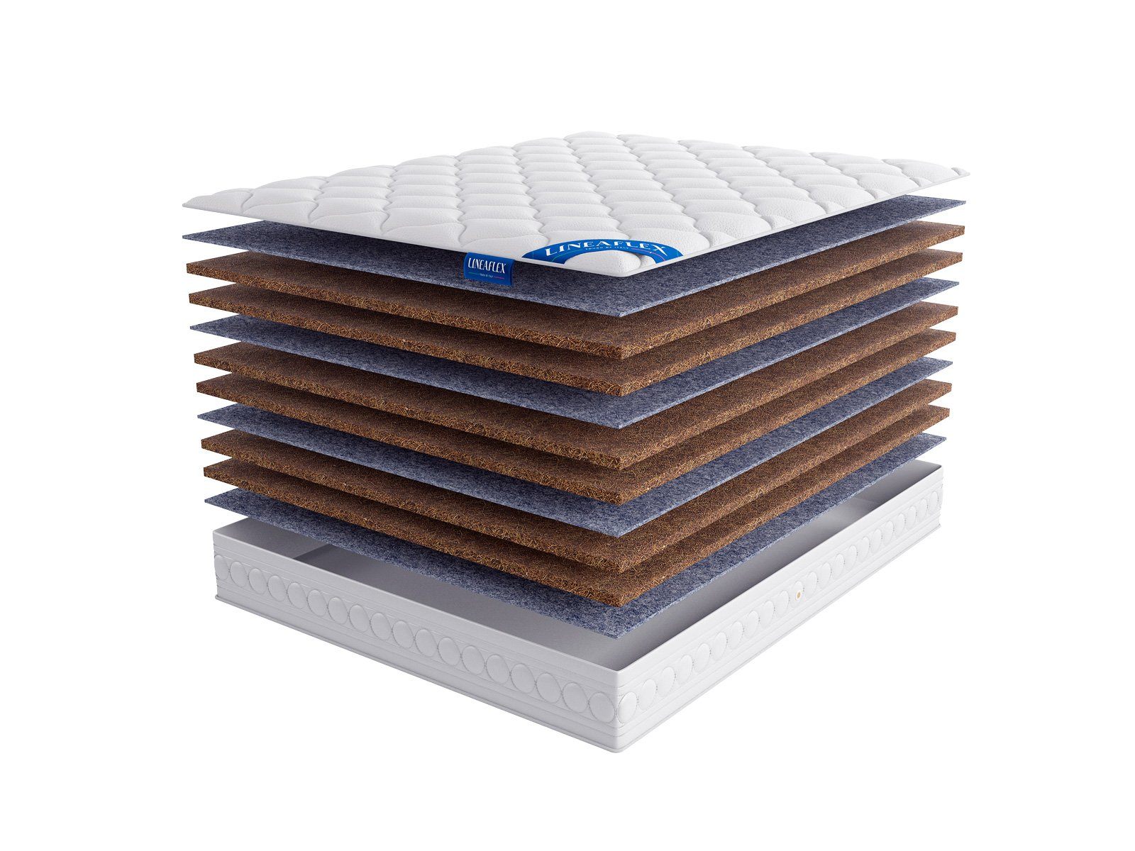 Для того, чтобы добиться высокой жёсткости производитель использовал беспружинное наполнение, сформированное из объёмных кокосовых плит. В матрасе установлено сразу 6 слоёв койры кокоса по 3 см каждая. Таким образом общая высота изделия достигает 21 см.