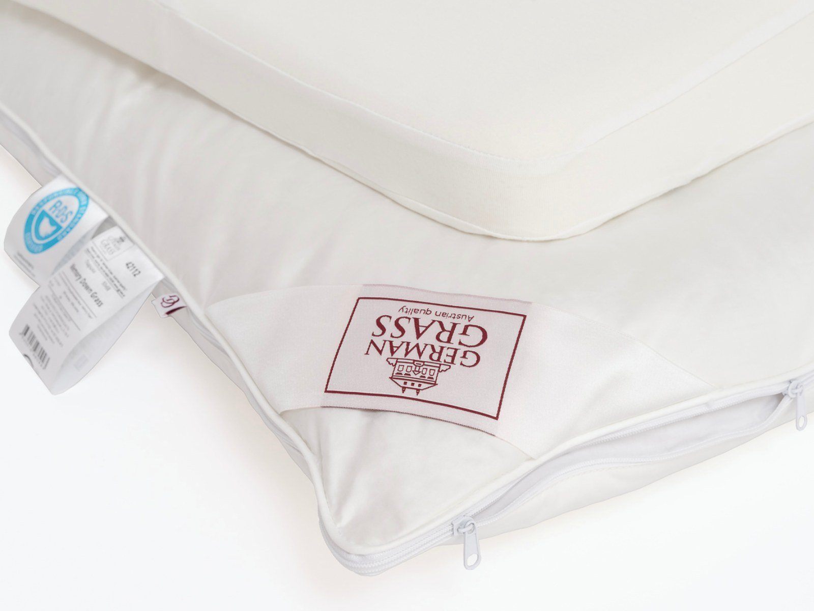 Съемный чехол на молнии с наполнителем из нежного гусиного пуха. Отобранный вручную, нежный пух подарит Вам особенно комфортный сон, сохраняя важные для здоровья ортопедические свойства подушки.