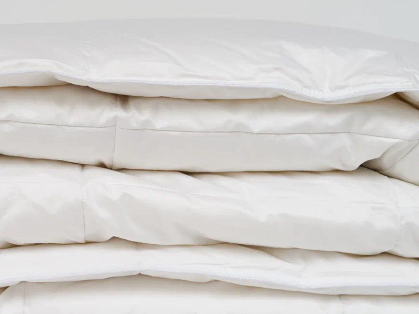 Всесезонное одеяло Воздушный Вальс с 100% пуховым наполнителем в снежно-белом чехле с атласным белым кантом. Ткань чехла - 100% хлопок – батист с антибактериальной обработкой "ACTIGARD".