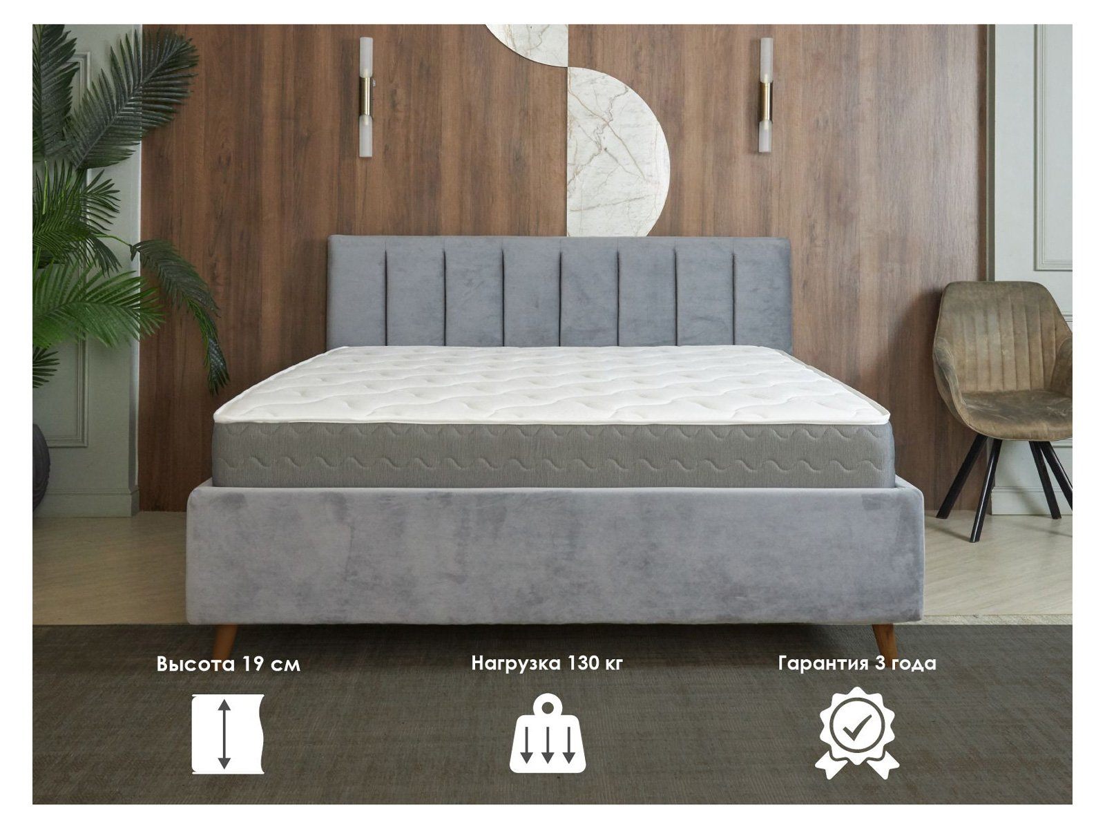 Матрас обеспечивает стабильный и здоровый сон, помогая поддерживать правильную осанку даже при весе до 130 кг.