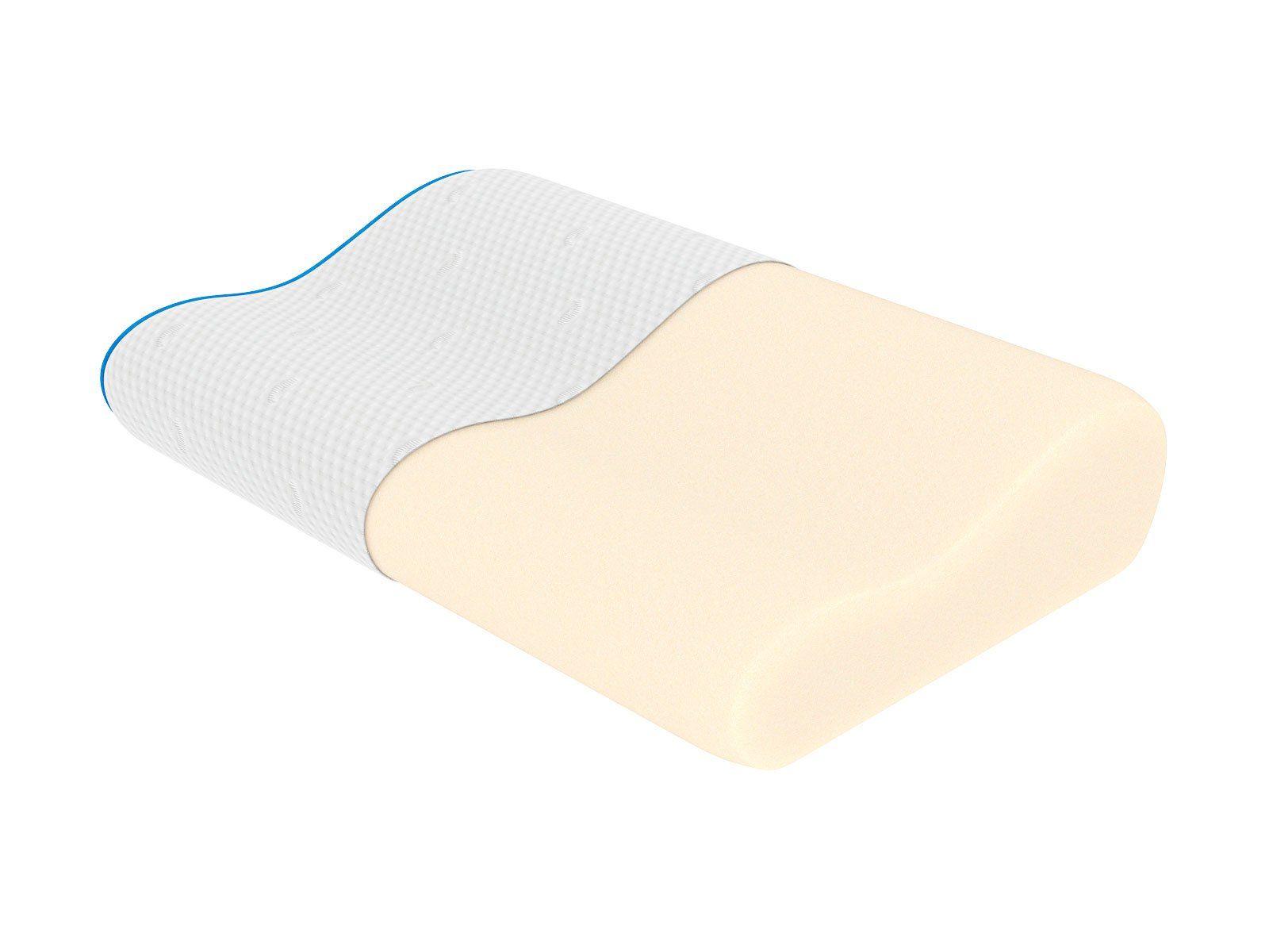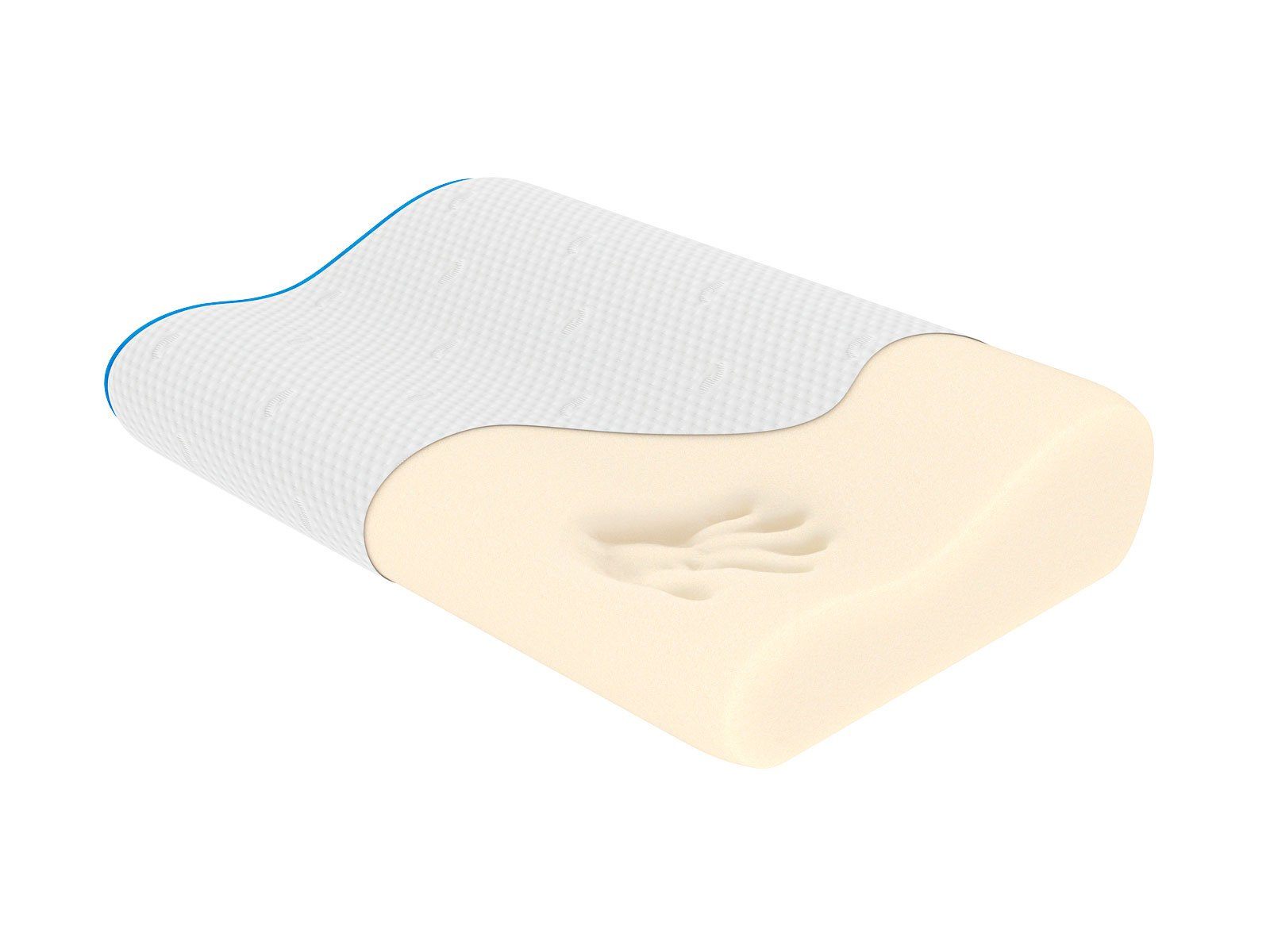 Ортопедическая форма подушки создана с учётом человеческой анатомии. Под шеей и над головой оказывается валики, которые обеспечивают правильное анатомическое положение головы и позвоночника.