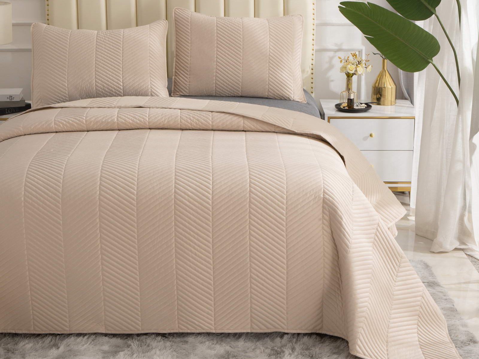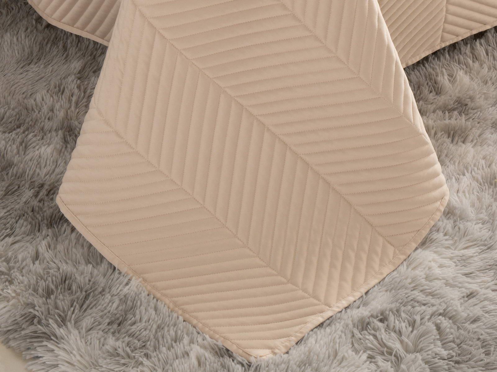 Стёганое дышащее покрывало Адонис на 70% состоит из хлопка и на 30% из вискозы. Ткань изделия гладкая и приятная на ощупь. Декоративный кант и ритмичный «елочный» рисунок, выступающий над поверхностью, придают покрывалу игривый утонченный вид.
