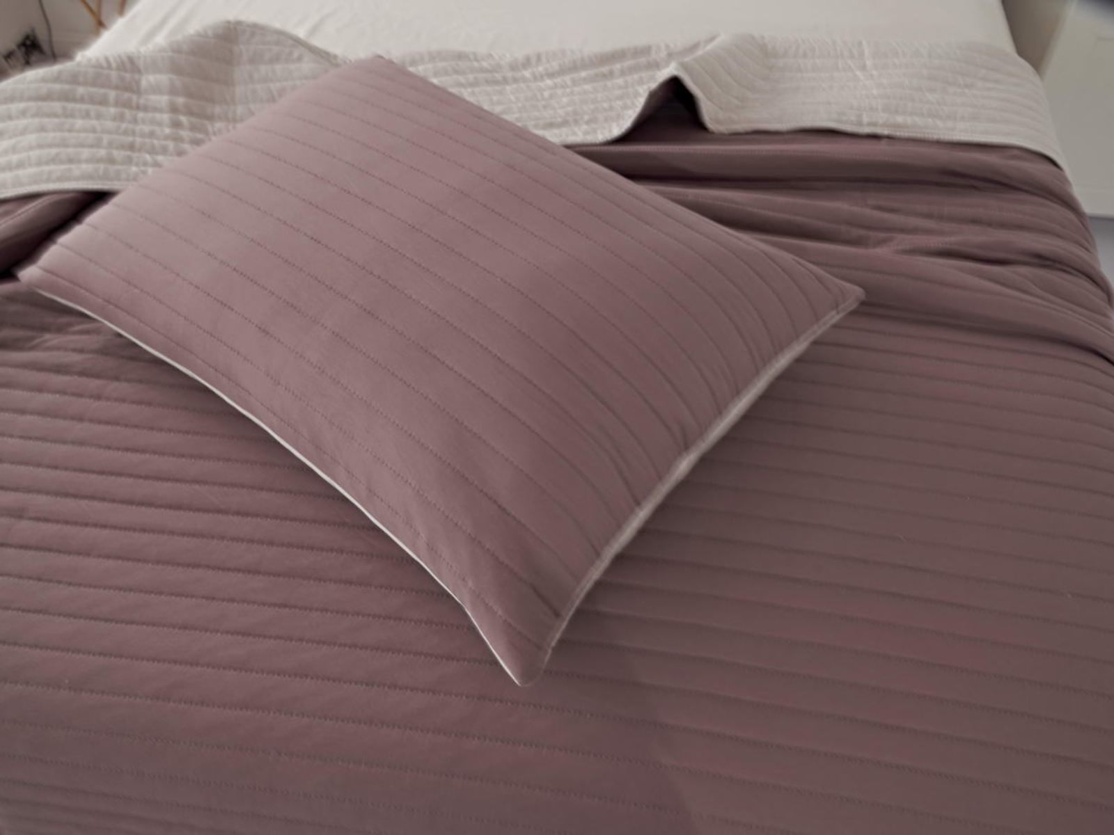 Покрывала двусторонние, оборотная сторона декорирована окантовкой, они выглядят сдержанными и универсальными. Изделия выполнены в восьми оттенках, подойдут для различных интерьеров, объединяет коллекцию потрясающее качество и приятный внешний вид.