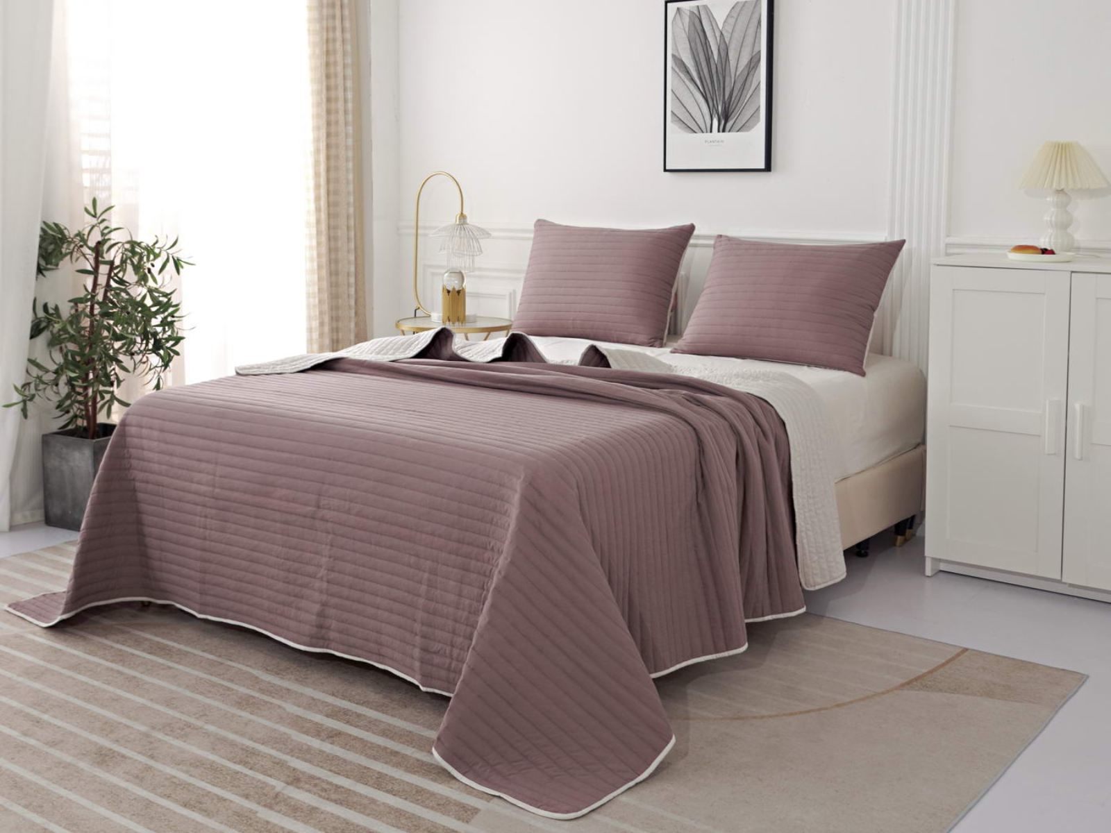 Двусторонние стеганные покрывала Самуэль выполнены из вискозы и хлопка, они легкие и прочные. В комплект входят покрывало и одна либо две наволочки (50х70 см) из аналогичного материала в зависимости от размера, вы можете использовать покрывало по назначению, либо в качестве постельного белья. В любом случае, вы будете в восторге от этого комплекта!
