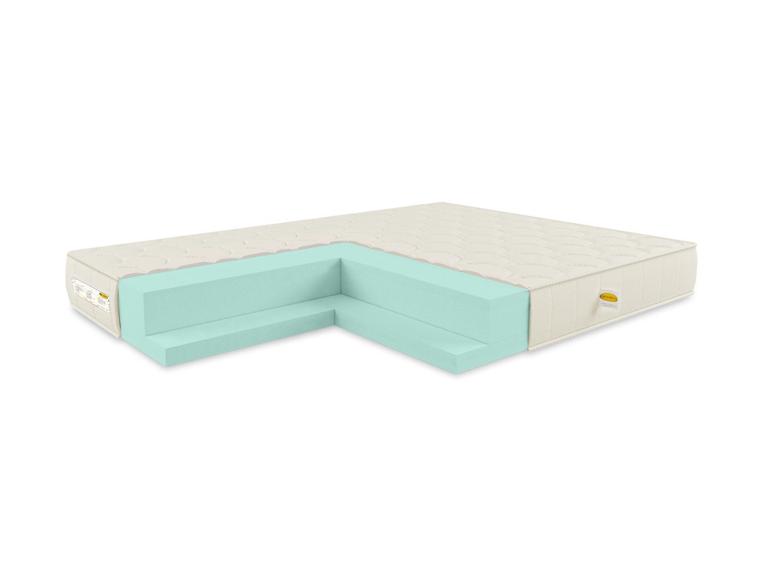 Единственным наполнителем для матраса выступает так называемый искусственный латекс. Здесь установлена мощная плита в толщине сразу 20 см, которая занимает весь объём матраса. Материал представляет собой синтетическую пену ППУ, которая по плотности и свойствам очень схожа с натуральной латексной плитой. Наполнитель не только пропускает воздух, но также обладает эластичностью и упругостью – именно эти качества важны для комфортного сна. Средняя жёсткость пены – это золотая середина для тех, кто избегает излишней твердости и чрезмерной мягкости спального места.